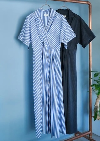 オープンを記念して、今季のメインビジュアルに採用されている新作シャツドレス「Poplin Shirts Dress(Stripe/Navy)」33,000円(税込)を先行発売する。