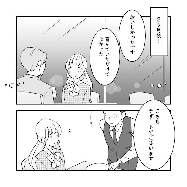 「おいしかったです」レストランで食事をした後、感想を和男さんに伝えると、「喜んでいただけてよかった」と和男さん。すると、「こちらデザートでございます」と運ばれて来たお皿を見ると、