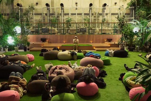 芝生の上に寝転び、シータ波を意識した音、生演奏やダンス、歌、朗読などの芸術が静かに溶け合う空間の中で、思考がほどけ、心と身体が自然に整っていく感覚を味わうことができる。