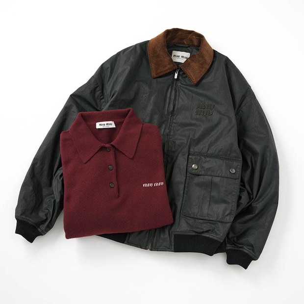 「ちょっとおじさんっぽいムードなのに、着ると一気に今っぽくなるのはさすがだなって」。ミュウミュウのジップブルゾン、ニット/共に本人私物