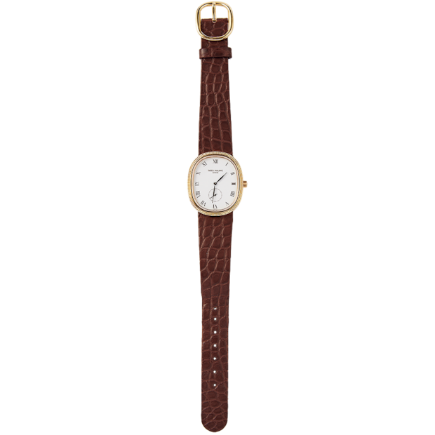 「パテックはいつもチェックしている大好きなブランド。このモデルはずっと探していた80年代のヴィンテージなんです。現行品よりもフェイスが小さめなの。ベルトは新しく交換、上品にブラウンレザーを選んでみました」。パテック フィリップの時計/本人私物