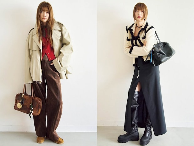 「最近特にブラウンとレッドの組み合わせが可愛いなって思っていて、このスタイリングもその2色をメインにしました」とヨンアさん。ブラウントーンの濃淡のつけ方がバランスよく、さすがですよね。