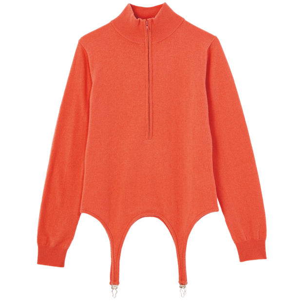 「ブラウンコーデの差し色にレッドを入れるのも好きなんだけど、同じようにオレンジも好き! キレイな色はやっぱり気分を明るくしてくれるよね」。チカ キサダのニット/本人私物