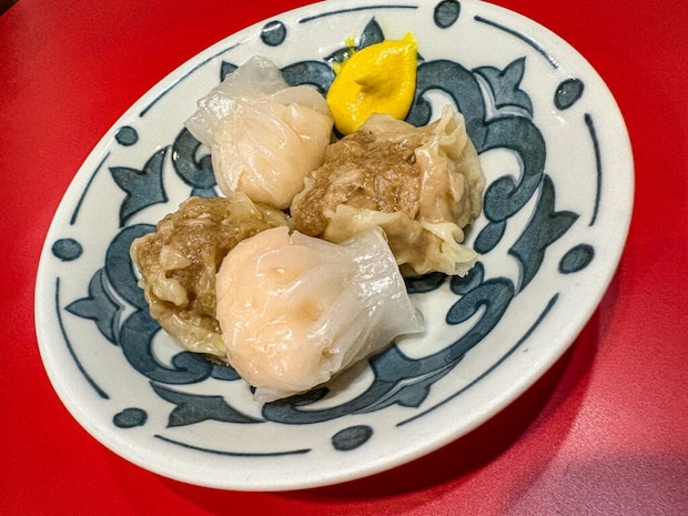 肉シュウマイとエビシュウマイ、どちらも肉汁があふれるあふれる…