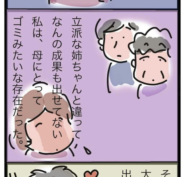 おかんさんは、優秀な姉と比べて、自分は両親にとってでき損ないの子どもだと感じていました。