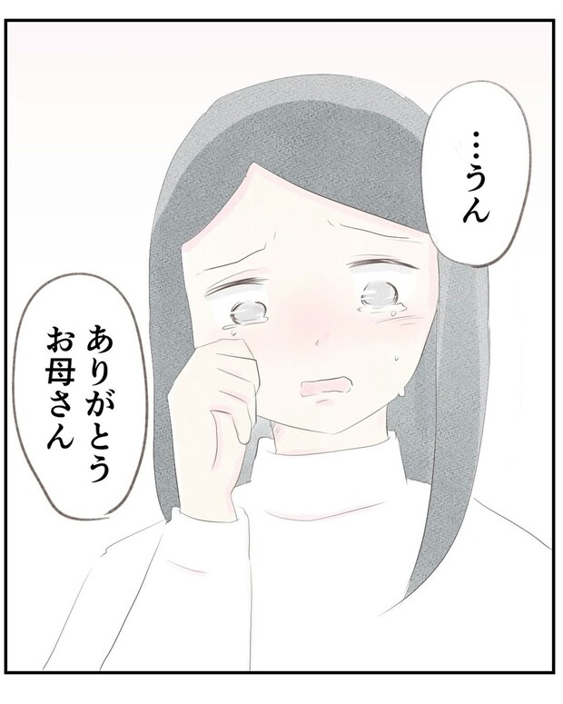 母親は、ゆうさんの離婚を後押ししてくれ、「ゆうさんの味方」だと安心する言葉をかけてくれました。優しいことを言われて泣いてしまったゆうさん、思い切って実家へ出向き、母親に相談して良かったですね。