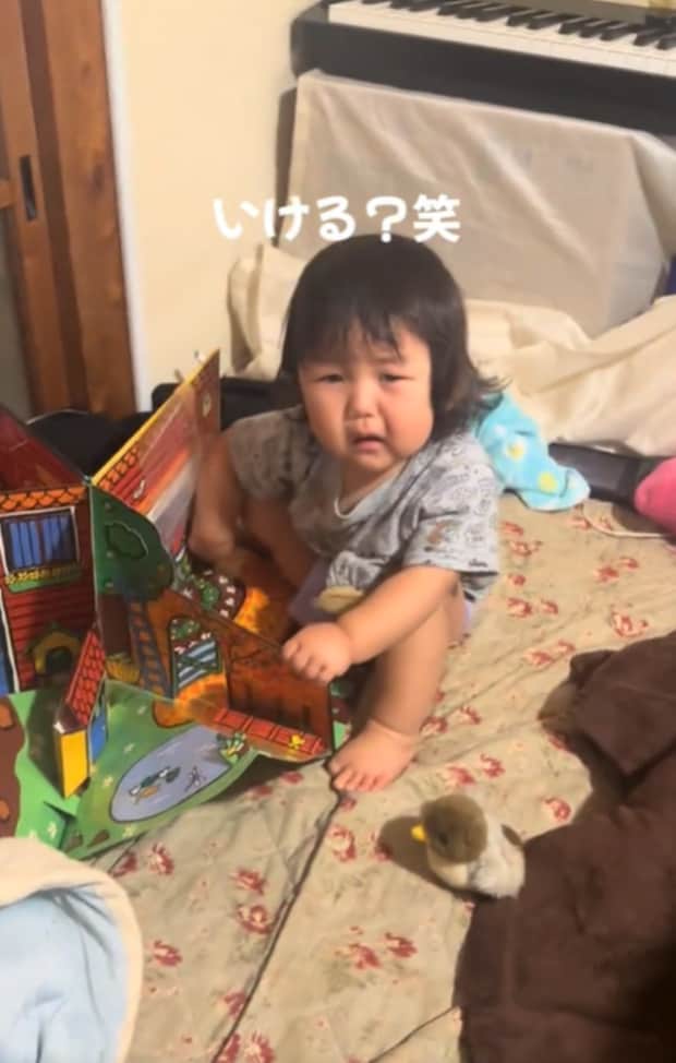 お母さん この本の中に、いつも入ろうとして入れなくて、泣いたり怒ったりしてます(笑)。他にも私の鼻をコンコンとノックしてきたり、バアバやジイジの写真にスプーンでご飯をあげたりと、毎日笑わせてもらってます。