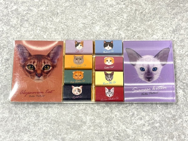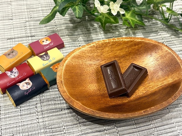 チョコレートには、スコティッシュフォールドやアメリカンショートヘアといった猫のイラストがプリントされています。派手すぎず上品さも感じるタッチのイラストで、高級感が漂うチョコレートですね!