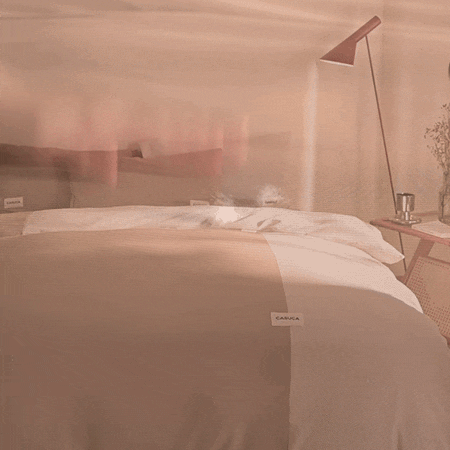「Peecatboo」のルームウェアは、「手で払うだけで毛が落ちる」という特殊素材が採用されており、ペットと暮らす人の悩みに向き合う一着だ。