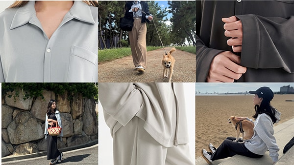ちょっとした外出や愛犬との散歩にも活躍し、着替えのいらない“シームレスな暮らし”を実現する。
