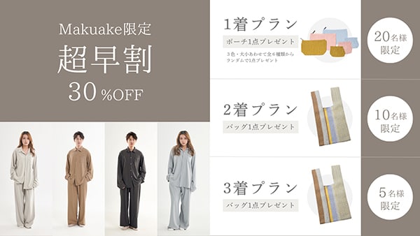 特典として、Makuake限定価格の「超早割30%OFF」、