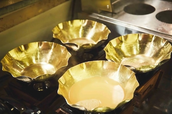 「すっぽん湯豆腐」は、出汁に定評のある「すっぽんの濃厚スープ」を湯豆腐のベーススープにしている。具材には、嵯峨豆腐・うなぎ・地鶏などを使い、茶懐石にオマージュを込めた盛り付けで提供する。