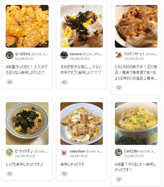 つくれぽ(つくりましたフォトレポートのこと)にも、「卵がトロトロで家族から好評でした」「材料が少ないからとにかく簡単で便利!」など、レシピの簡単さや味を絶賛する声がたくさん届いています。