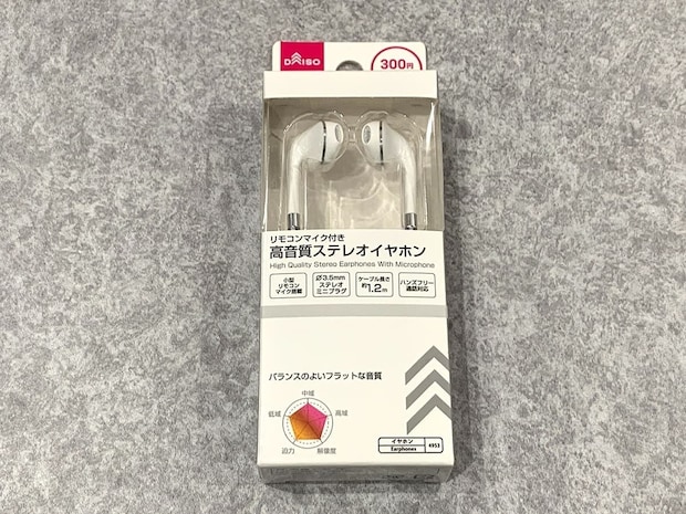 ダイソーの「リモコンマイク付きイヤホン(税込330円)」は、手元で再生・停止や通話操作ができる便利なリモコン付き。有線タイプのため接続が安定しており、動画視聴も遅延なく楽しめます。