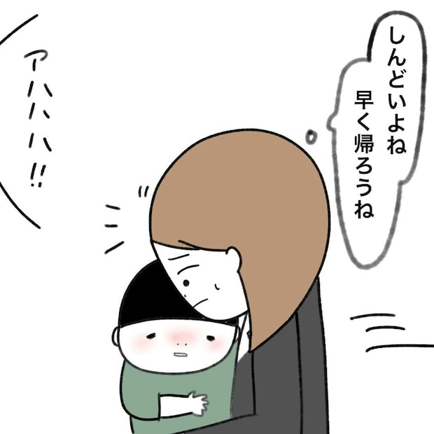 フルタイムで働き、息子さんの保育園の送迎をこなすかかじりさんにとって、朝は勝負の時間。子どもを送った後に楽しそうにおしゃべりをするママたちをうらやましいと思うも、時間が惜しいかかじりさんは、息子さんをスムーズに預けるべくテキパキとこなします。