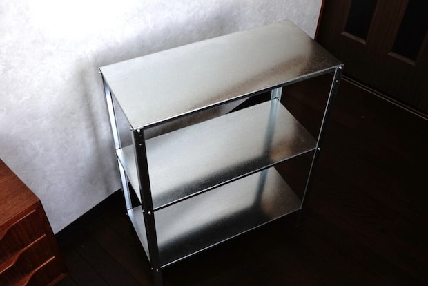 一方で、棚板はかなり薄く、 重量のあるものを載せるとペコペコとたわみます。