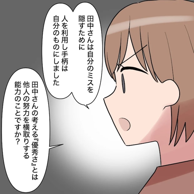 そして、私は「田中さんは自分のミスを隠すために人を利用し手柄は自分のものにしました。田中さんの考える『優秀さ』とは他人の努力を横取りする能力のことですか?」とまっすぐ田中さんの目を見て問いかけました。