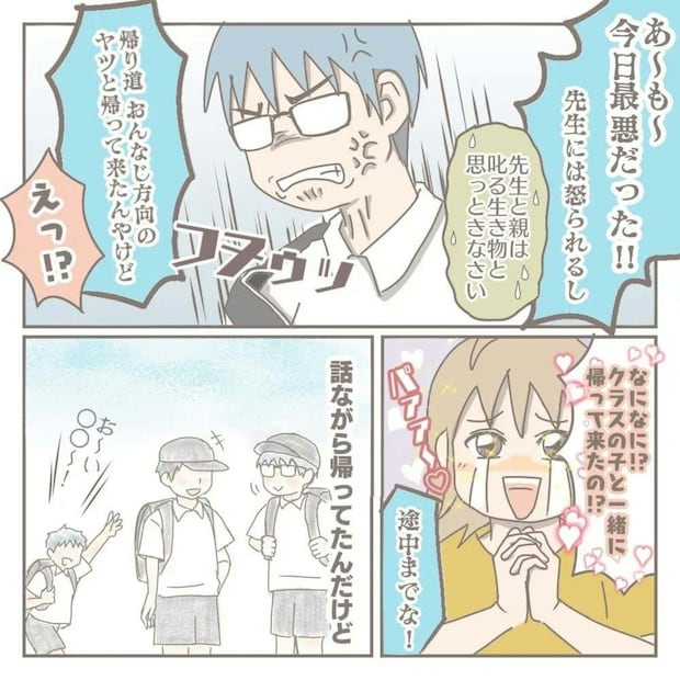 ある日、とても機嫌の悪い状態で、トモたんが帰宅しました。途中までクラスの子と帰ってきたと言います。