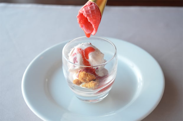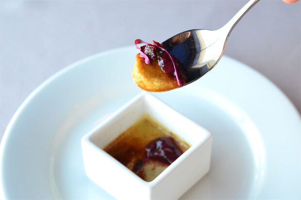 いちごとスグリの実のキュンとした酸味に、世界三大珍味の名に恥じぬどっしりしたフォアグラの存在感が抜群。卵黄が入っているそうで、とっても濃厚でクリーミー!