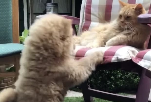 自分も一緒に座りたくなったチャウチャウの子犬さん。