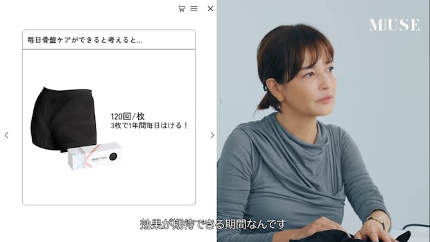 気になるメカニズムは、ショーツの微妙な凹凸が皮膚に触れることによって、骨盤まわりの筋肉にアプローチかけ、微弱な筋トレ効果が期待できるという仕組み。例えば、蚊が止まったときに「あ、蚊が止まったな」と分かる感覚。まさにそれと同じメカニズムで、凹凸が皮膚の感覚センサーにアプローチをかけているんだそう。生地が肌に触れることが重要なので、下着のかわりに直接はいて使用します。