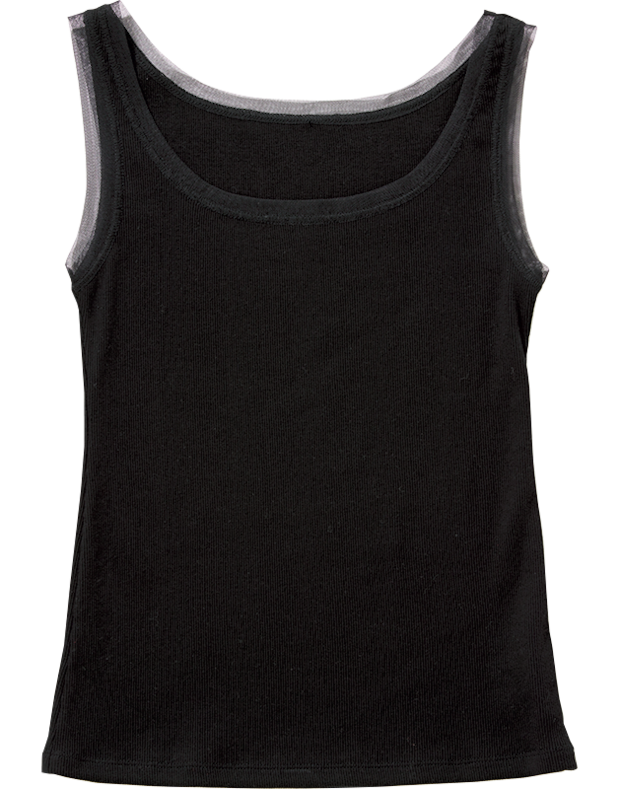 カジュアルでマニッシュなイメージがあるタンクトップも、ジル スチュアートの手にかかれば、フェミニンなアイテムに変身! 襟ぐりとアームホールにはチュールが施されており、丈感が少し長めに設定されているので、インナーとしてはもちろん、1枚で着用するのも◎。