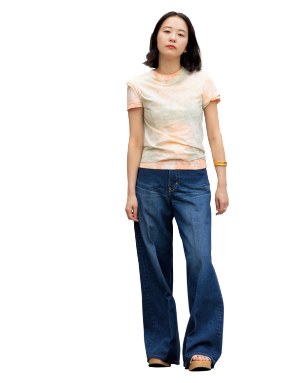 別注Tシャツ各¥19,800※色違いを重ねて着用(共にカナコ サカイ)、別注デニム¥22,880(カナコ サカイ×リー/全てエディション 表参道ヒルズ店)、Cartierのネックレス、CELINEのブレスレット、JIL SANDERのシューズは本人私物