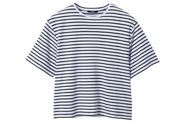 品よくきまる細かめピッチ。ボーダーTシャツ¥16,500(セオリー/リンク・セオリー・ジャパン)