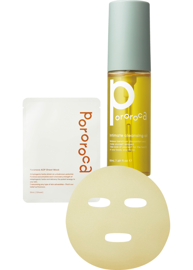 環境問題や女性特有の健康問題などの社会課題に積極的に取り組むウェルネス&ビューティブランド。インティメイトクレンジングオイル 50mL ¥3,850、ADPシートマスク ¥1,430(共にジュン)