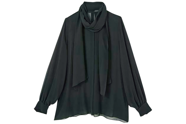 「ブラックシアーのブラウスは、それだけでおしゃれしている感が出る、実は大人にとって便利なアイテム。ブラックパンツを合わせればお出かけに、逆にデ二ムでデイリーにも落とし込めるから、着まわし力がかなり高いと思います」。