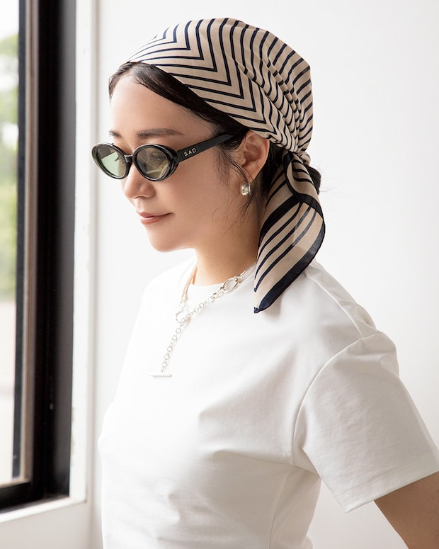 スカーフ×サングラスで“らしさ”を引き出すスタイルに