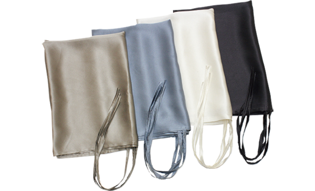 18種類のアミノ酸が含まれ、保湿性の高いシルク100%を使用したピローカバー。紐で留めるタイプなので、枕サイズを選ばずフレキシブルに対応。DRESS HERSELF シルクピローカバー 各¥4,950(山忠)