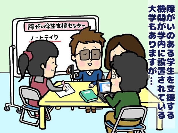 主人公の通う大学には、障がいのある学生を支援する機関はありません。そこで主人公は、ある考えを思いつきました。