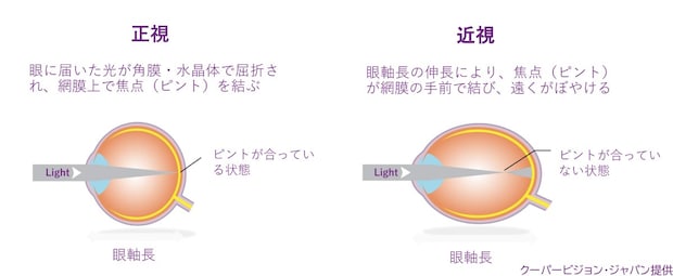 子どもの近視は、発症年齢が低いほど重症化(強度近視化)するリスクが高まります。また、近視は将来、失明にもつながる合併症のリスクを高め、近視の度数が強いほどそのリスクも上昇します。近視を元に戻す治療は今のところありませんが、進行を抑える二つの治療がこの1年ほどの間に相次いで承認されました。2026年1月27日にクーパービジョン・ジャパンが主催した「世界と日本の近視進行抑制を考えるプレスセミナー」での講演をもとに、子どもの近視を放置してはいけない理由や、進行抑制治療などについてまとめました。