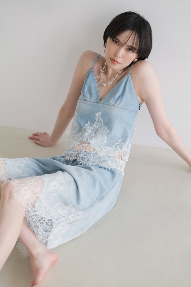 エッジのきいたアイテムに定評のあるディーゼルでは、薄手のデニムにセンシュアルなレースが施されたキャミソールが見逃せない♡ フレッシュなライトブルーがいち早くサマームードを運んでくれます。1枚でももちろん、Tシャツやタンクトップとのレイヤードスタイルも楽しんで。