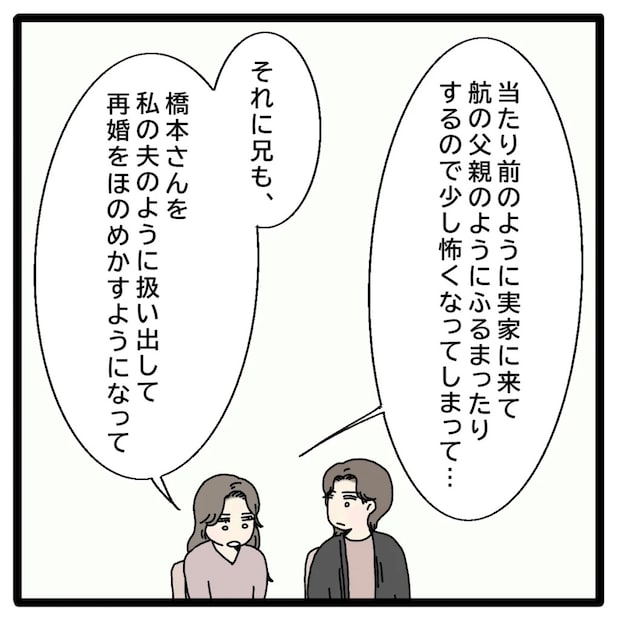 「当たり前のように実家に来て、航の父親のように振る舞ったりするので少し怖くなってしまって・・・それに兄も、橋本さんを私の夫のように扱いだして再婚をほのめかすようになって」怖い思いをしたんでしょう。そう話す聡子さんの肩は、少し震えていました。