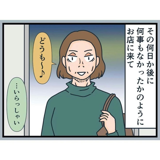 ひとまず謝罪した店長に、「あたしで良かったわよ」「他の人だったらもっと怒ってるわよ」など言葉を浴びせます。