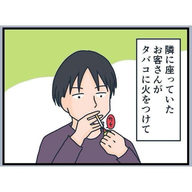 来店した問句さんが、いつものように禁煙席に座り、隣の男性がタバコに火をつけたところから、次のトラブルが始まったのです。
