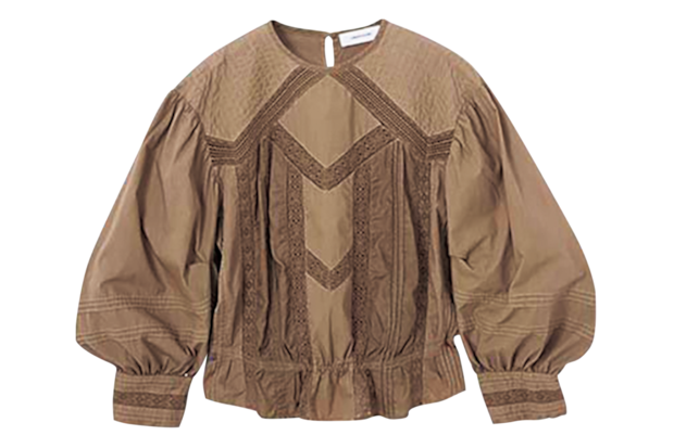ヴィンテージライクな1枚はデニムとの相性抜群。ブラウス¥107,800(コル ピエロ ドットコム/コル ピエロ)