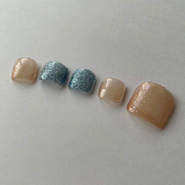 シアーなネイル同士を重ねる方法も透け感が可愛いので夏にオススメ。透明感のある2色なら、ラメの上からカラーを重ねるのがコツです。角度によって光が変わるようなさりげないニュアンスが出ます。
