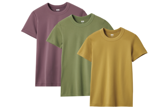 くすみカラーなら大人もチャレンジしやすい。カラーTシャツ各¥1,500(全てユニクロ ユー/ユニクロ)