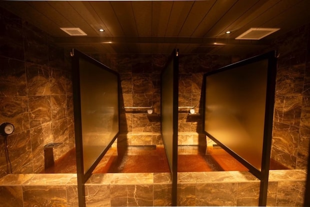 とのこと。なんでも男性用は個室があり、女性用は仕切りのある4名まで入れますが、かなり暗がりなので隣の人があまり見えないつくり。いいでしょう、アレコレ聞くより体験! お風呂、入りましょう!