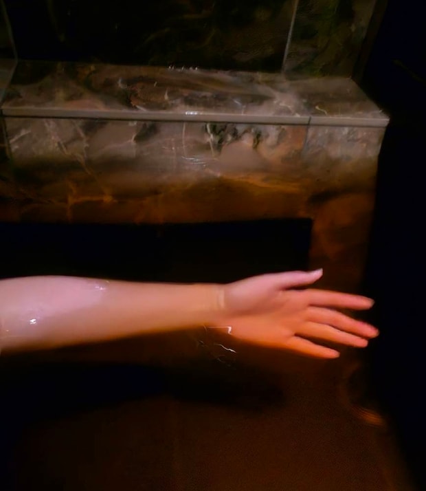 恐る恐る手を当ててみました。電気刺激はお湯の中で「ブーン、ブーン」と音がして、当てているところの肉がぎゅううっと、収縮する感覚。市販のEMS機器とはちょっと異なる、不思議な感覚です。
