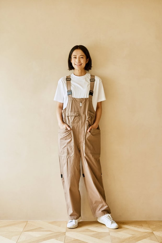 というのもコチラのサロペット、デザイン自体はワークなのですが、シルエットが少しテーパード気味になっているんです。スラックスなどのドレッシーなパンツに比べると弱めではあるものの、そのおかげでスニーカーだけでなく、バレエシューズやミュールといった女性らしいシューズとも抜群の相性。つまり、より足元の選択肢が広いサロペットなのです。