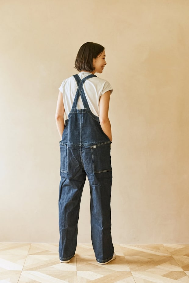 また、オーバーオールに比べるとトップスの見える面積が多いため、Tシャツと合わせても作業着のように見えないというのもサロペットの魅力。あらゆるデザインのインナーとマッチしますし、カジュアルにも都会的にも着こなせる。着まわし力も申し分ナシなので、ワードローブにあると確実に重宝します。