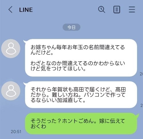 夫の義姉から夫のLINEに届いた内容でイライラしています。
