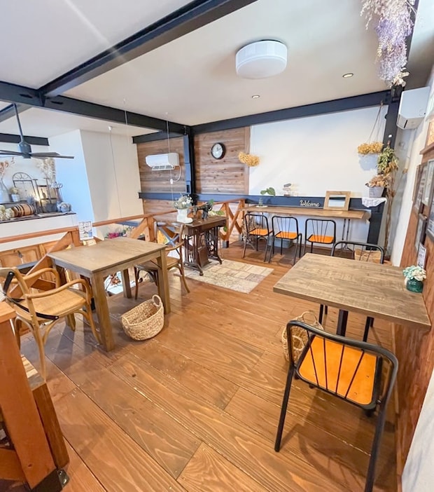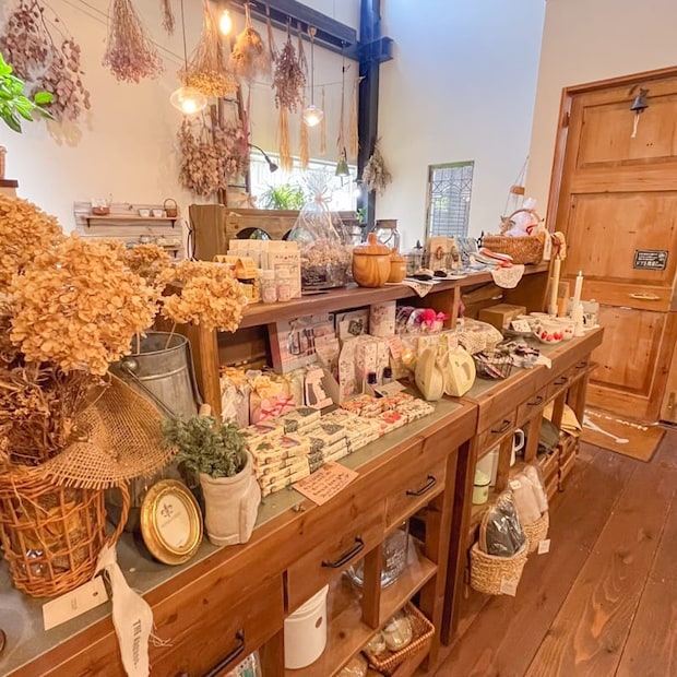 店内は、ドライフラワーやアンティーク家具、雑貨たちに囲まれたとても素敵な空間!
