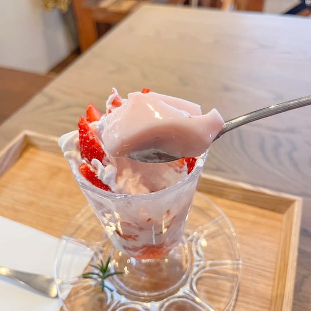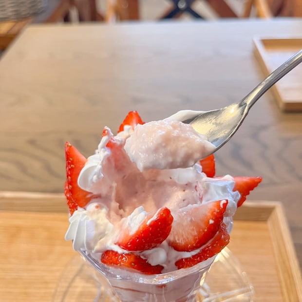 こちらは、あまおうソフトの代わりに自家製のソルベアイスクリームがたっぷりと使われていてとても優しく自然な甘みです。
