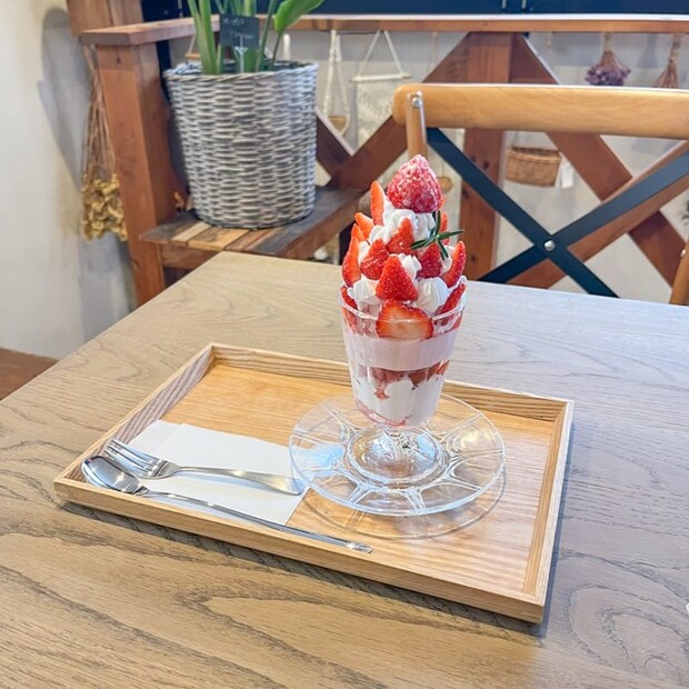 一度訪れたらまた足を運びたくなる…そんな特別な場所になるお店です。その癒しの空間で絶品のあまおうパフェをぜひご堪能ください♪