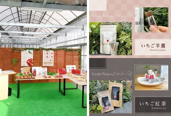 また、いちご直売所も併設。いちごの販売に加え、いちごを使った「いちご羊羹」「いちご紅茶」などの加工品も販売している。
